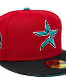 Represent your team with Red Houston Astros 40th Anniversary custom New Era fitted at from Sports World. 59Fifty high crown cap. Front logo teal with black and white outline. 40th anniversary side patch. Teal under visor. White sweat band. 100 percent polyester. Imported from Bangladesh.