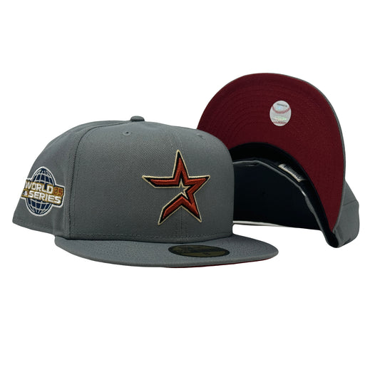 Houston Astros 2005 World Series Storm Gray Burgundy Brim New Era Fitted Hat