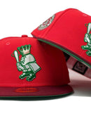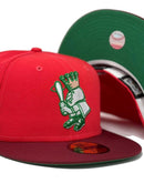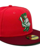 Presenting a unique custom New Era "COLEAUS COLLECTION" from Sports World. 59Fifty high crown cap. It features an all-lava red color crown with burgundy visor. front Kansas City Royals Mascot logo in botanical green with white outline. 1973 all-star game side patch on left mid panel. Tonal new era flag on right mid panel. flat MLB batter man in the back. Botanical green under visor. white sweat band. 100 percent polyester. imported from Bangladesh.