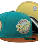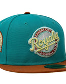 Kansas City Royals 40th Anniversary Aqua Green Rust Orange Visor Butter Popcorn Brim New Era Fitted Hat