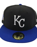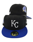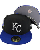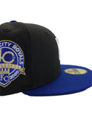 Custom new era fitted. 100% wool. all black cap with royal visor. Front logo in white. 40th season side patch. gray under visor. black sweatband.