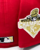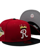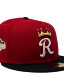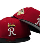 Introducing a unique custom Kansas City Royals gray brim New Era fitted hat from Sports World 165. The 59Fifty high crown fitted hat is designed with a sleek all red color cap with black visor that provides a bold contrast to the classic design.