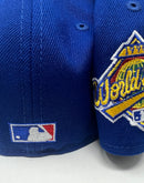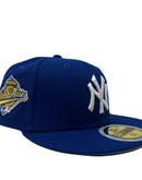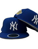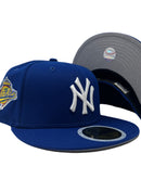 Presenting an exclusive New Era fitted hat for kids. it features all light royal blue color cap. Front logo in white. 1996 world series side patch on left mid panel. White new era flag on right mid panel. Flat MLB Batterman in the back. Gray under visor. black sweat band. 100 percent polyester. imported from Bangladesh