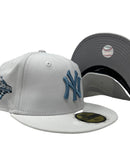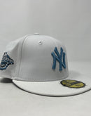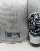 Introducing a unique custom New York Yankees 2001 world series New Era fitted hat from Sports World 165. The 59Fifty high crown fitted hat is designed with a all White color cap.