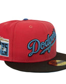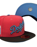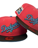 Presenting a unique custom Los Angeles Dodgers Jackie Robinson 75th anniversary icy brim New Era fitted hat from Sports World. The 59Fifty high crown fitted hat is designed with a sleek all coral color cap with brown visor that provides a bold contrast to the classic design.