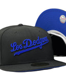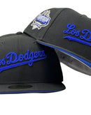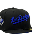 Introducing a unique custom Los Angeles Dodgers royal blue brim New Era fitted hat from Sports World. The 59Fifty high crown fitted hat is designed with a sleek all black color cap that provides a bold contrast to the classic design.