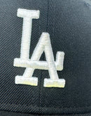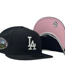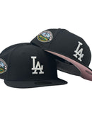 Introducing a unique custom Los Angeles Dodgers pink brim New Era fitted hat from Sports World. The 59Fifty high crown fitted hat is designed with a sleek all black color cap that provides a bold contrast to the classic design.