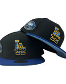 Introducing a unique custom Los Angeles Dodgers icy brim New Era fitted hat from Sports World. The 59Fifty high crown fitted hat is designed with a sleek all black color cap with a stylist royal blue visor that provides a bold contrast to the classic design.