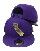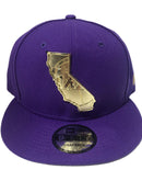 New era snapback. Front logo in metal gold. purple snap