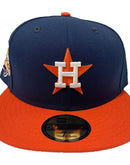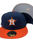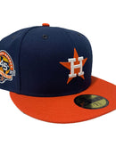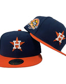 Custom new era fitted hat.all navy cap with orange visor. 45th anniversary side patch. gray under visor.