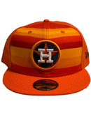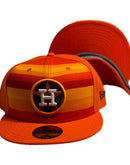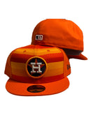 All orange cap. yellow and orange stripe on the front panel.