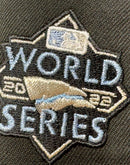 The front logo in metallic sky blue. 2022 world series side patch on the left mid-panel adds a unique touch to the design, commemorating a special moment in the team's history.