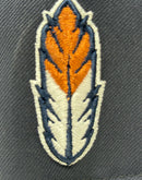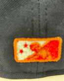 The front logo, featuring a vibrant combination of metallic red with metallic silver outline and metallic copper baseball bat. Whether you're cheering from the stands or hitting the streets, this hat ensures you stand out from the crowd with its eye-catching appeal.