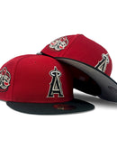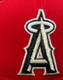 Introducing a unique custom Los Angeles Angels gray brim New Era fitted hat from Sports World. The 59Fifty high crown fitted hat is designed with a sleek all red color cap with black visor.