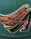 Introducing a unique custom throwback Angels 50th anniversary gray brim New Era fitted hat from Sports World. The 59Fifty high crown fitted hat is designed with a sleek all dark green color cap with...
