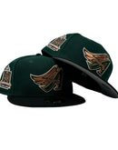 Introducing a unique custom throwback Angels 50th anniversary gray brim New Era fitted hat from Sports World. The 59Fifty high crown fitted hat is designed with a sleek all dark green color cap with black visor that provides a bold contrast to the classic design.