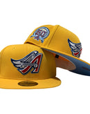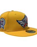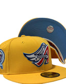 Custom new era fitted. All yellow cap. icy blue under visor. 50th season side patch.