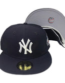 All Navy cap. Front logo in white. gray under visor.White sweatband. 2000 worls series side patch