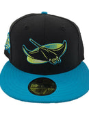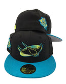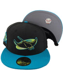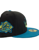 Custom new era fitted. 100% wool. all black cap with teal visor. 10th season side patch. gray under visor