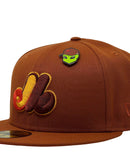 Presenting a unique and out-of-this-world release from Sports World, the "Outer-Space Pack" by New Era. Prepare to blast off with this stunning rust orange cap, featuring a front logo in a vibrant color scheme of maroon, mustard yellow, and orange with a mustard yellow outline. To add a touch of galactic flair, a sleek metal New Era pin is attached to the hat, while a tonal New Era flag adorns the right mid panel.