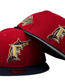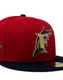 Introducing Florida Marlins 1997 world series gray brim New Era Fitted Hat, a must-have accessory for all Florida Marlins fans. This high-quality hat is designed to provide a comfortable and stylish fit while representing your favorite MLB team. The intricate embroidery on this hat is unmatched and highlights the team's logo on the front panels, 1997 World Series patch on the right mid panel. Flat MLB logo on the rear.