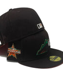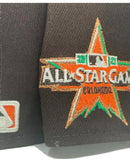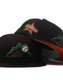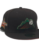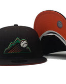 Celebrate your Halloween with a fall colorways, Deep Brown Colorado Rockies 2021 All Star Game custom New Era fitted hat from Sports World. Front Mountain logo in brown with green and orange outline. 2021 all star game side patch in left mid panel. Tonal New Era flag on right panel. Orange under visor. White sweat band. 100 percent polyester. Imported from Bangladesh.