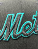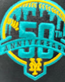 The front logo in metallic black pearl with turquoise outline is the perfect representation of the team, giving it a modern and stylish appeal that any Mets fan would love. 50th anniversary side patch on the left mid-panel adds a unique touch to the design, commemorating a special moment in the team's history.