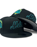 Introducing a unique custom New York Mets gray brim New Era fitted hat from Sports World. The 59Fifty high crown fitted hat is designed with a sleek all black color cap that provides a bold contrast to the classic design.