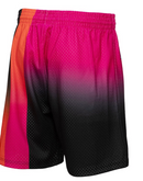 Officially licensed Mitchell & Ness hardwood classics swingman shorts, features a fadeaway color design alongside an elastic waistband for extra comfort. Classic Miami Floridians graphic design paired with the iconic black and pink colorway.