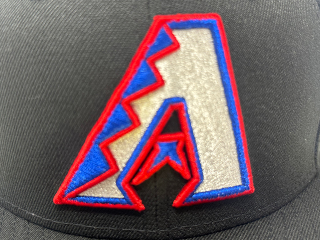 Celebrate a championship legacy in style with this Arizona Diamondbacks 2001 World Series gray Brim Fitted Hat, offered by Sports World 165. This 59Fifty high-crown cap perfectly combines heritage and modern edge, making it an ideal addition for collectors and Diamondbacks fans alike. Its all-black colorway exudes a classic, understated charm, complemented by a unique gray under-visor that adds a refreshing pop of color. The front logo, designed in a bold toast hue with metallic silver with metallic royal and red outlines, pays homage to the Diamondbacks’ iconic look, capturing the spirit of their unforgettable 2001 season. The left mid-panel showcases the 2001 World Series side patch in tribute to their championship, making this cap an essential piece of baseball history.