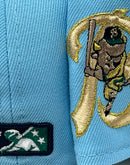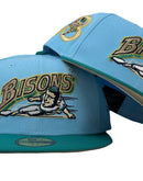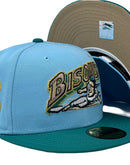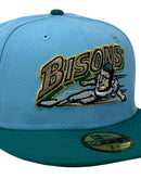 Introducing a unique custom Buffalo Bisons camel brim New Era fitted hat from Sports World. The 59Fifty high crown fitted hat is designed with a sleek all sky-blue color cap with turquoise visor that provides a bold contrast to the classic design.