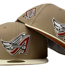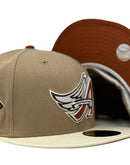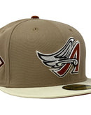 Introducing the must-have addition to your collection - the unique Anaheim Angels New Era fitted hat from Sports World. This 59Fifty high crown cap is crafted in an alluring camel/khaki color, paired with a sleek off-white visor for a truly eye-catching look.