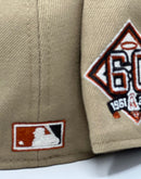 Featuring a front logo in a stunning rust orange and white, outlined in brown, this cap truly stands out. Celebrating the Angels' 60th anniversary, the left mid panel boasts an impressive commemorative patch, while the right mid panel showcases a tonal New Era flag.