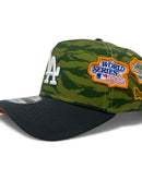 Celebrate the legendary Los Angeles Dodgers with their world series patch. Front logo in white. Multiple world series patches embroidered on left and right of the cap.