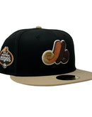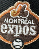 Introducing a unique custom Montreal expos gray brim New Era fitted hat from Sports World. The 59Fifty high crown fitted hat is designed with a sleek all black color cap with camel visor that provides a bold contrast to the classic design.