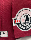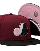 Introducing a unique custom Montreal expos pink brim New Era fitted hat from Sports World. The 59Fifty high crown fitted hat is designed with a sleek all burgundy color cap with black visor that provides a bold contrast to the classic design.