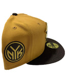 Custom made new era cap. two-tone brown and tan metal logo with side patch
