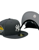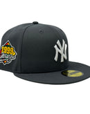 Introducing a unique custom New York Yankees 1999 world series New Era fitted hat from Sports World 165. The 59Fifty high crown fitted hat is designed with a sleek all dark gray/ graphite color cap.