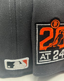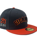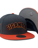 Introducing a unique San Francisco Giants Gigantes 20 anniversary gray brim New Era fitted hat from Sports World. The 59Fifty high crown fitted hat is designed with a sleek all dark graphite color cap with orange visor that provides a bold contrast to the classic design.