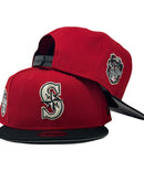 Introducing a unique custom Seattle Mariners gray brim New Era snapback hat from Sports World. The 9Fifty high crown snapback hat is designed with a sleek all red color cap with black visor that provides a bold contrast to the classic design.