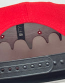 - All red color crown with black visor.