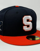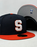 Unlock a new level of style and team pride with the Syracuse Orange 59FIFTY Navy Orange New Era Fitted Hat. Elevate your sports wardrobe with this meticulously crafted flat-brim, six-panel construction hat, designed for the ultimate fan who demands both fashion and function.