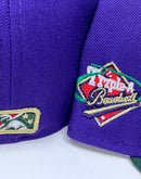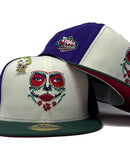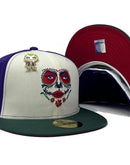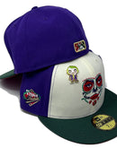 Presenting an exclusive custom "villain pack" only from Sports World. 59Fifty high crown cap. it features an off white color crown's front two panel. rear 4 panel in purple. green visor. front logo in purple, red and shamrock. TRIPLE A side patch on right mid panel. tonal new era flag on left mid panel. Flat MILB batter man in the back. red under visor. white sweat band. 100 percent polyester. imported from China.