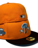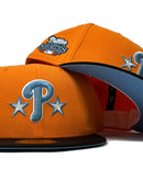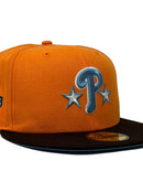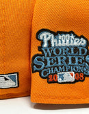 Presenting an exclusive " Bubble tea pack" only from Sports World. 59Fifty high crown cap. This hat is design by sports world, inspired from Passion fruits green tea. It features an all-light orange color cap with brown visor. front logo in sky blue with white outline. 2008 world series side patch on left mid panel. tonal new era flag on right mid panel. Flat MLB batter man in the back. sky blue under visor. white sweat band. 100 percent polyester. imported from Bangladesh. "BUBBLE TEA PIN INCLUDED"
