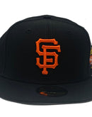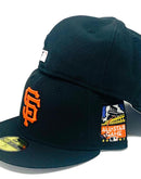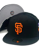 Custom new era fitted hat. all black cap. team original logo in front. left side 2007 all star game side patch. Raised MLB batter man in the back. gray under visor. white sweat band. it features 100 percent wool