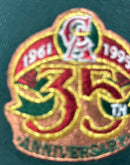 - Metallic gold and copper front logo with a metallic red outline; 35th-anniversary metallic side patch commemorating a historic milestone.