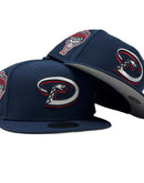 Introducing the stunning Arizona Diamondbacks 1998 Inaugural Season Gray Brim New Era Fitted Hat, a masterpiece brought to you by Sports World 165. Elevate your style with this exceptional custom 59Fifty high crown fitted hat, meticulously crafted to impress every sports enthusiast and fashion aficionado. Designed with meticulous attention to detail, this exclusive hat is a tribute to the team's rich heritage, celebrating their inaugural season in the most stylish way possible.
