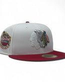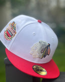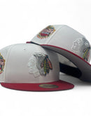 Unveiling a striking addition to yourΒ fitted hatΒ collection, this custom Chicago Blackhawks 2015 winter classic FittedΒ cap is a harmonious blend of classic design and modern detailing. The sleek white color crown is complemented by a bold red visor, making it the perfect accessory for any occasion. The front logo, rendered in metallic iris, metallic silver, black, green, yellow and red exudes sophistication, while the 2015 winter classic side patch adds a touch of nostalgic charm. Crafted with precision, this hat showcases the iconic NHL logo on the back, rounding off a design that pays tribute to sports heritage. Its gray under visor and black sweatband enhances both style and functionality, making it an ideal pick for collectors and enthusiasts alike.