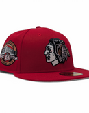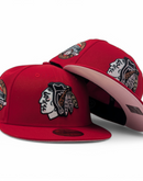 Unveiling a striking addition to your fitted hat collection, this custom Chicago Blackhawks Fitted New Era cap is a harmonious blend of classic design and modern detailing. The sleek all-red color cap makes it the perfect accessory for any occasion. The front logo, rendered in metallic silver, black, copper, light pink, and toast exudes sophistication, while the stadium side patch adds a touch of nostalgic charm. Crafted with precision, this hat showcases the iconic NHL logo on the back, rounding off a design that pays tribute to sports heritage. Its pink under visor and black sweatband enhance style and functionality, making it an ideal pick for collectors and enthusiasts.