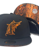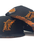 Presenting an exclusive New Era global Release Snakeskin print brim collection. It features an all black color cap. Front logo in neon orange and black. 1997 world series side patch on left mid panel in neon orange, black and white. white new era flag on right mid panel. raised MLB batter man in the back. Neon orange and black snakeskin print under visor. black sweat band. 100 percent polyester. imported from Bangladesh.